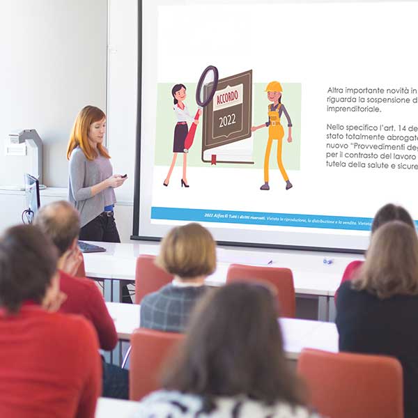 I supporti didattici di AiFOS non sono semplici slide, ma costituiscono un vero e proprio strumento per docenti e formatori, realizzato per agevolare i docenti nello svolgimento dei corsi in materia di salute e sicurezza.
