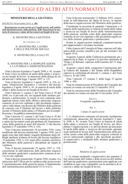Con la pubblicazione in Gazzetta Ufficiale, il 20 gennaio 2015, del Decreto 18 novembre 2014 n. 201 "Regolamento recante norme per l'applicazione, nell'ambito dell'amministrazione della giustizia, delle disposizioni in materia di sicurezza e salute dei lavoratori nei luoghi di lavoro", il Ministero della Giustizia di concerto con il Ministero del Lavoro e delle Politiche Sociali, il Ministero della Salute ed il Ministero per la Semplificazione e la Pubblica Amministrazione attua le disposizioni correlate agli articoli 3 e 13 del D.Lgs. 81/2008.